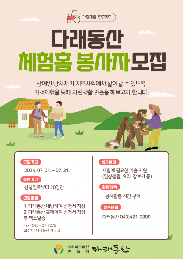 1. 사업명 : 다래동산 체험홈 봉사자 모집