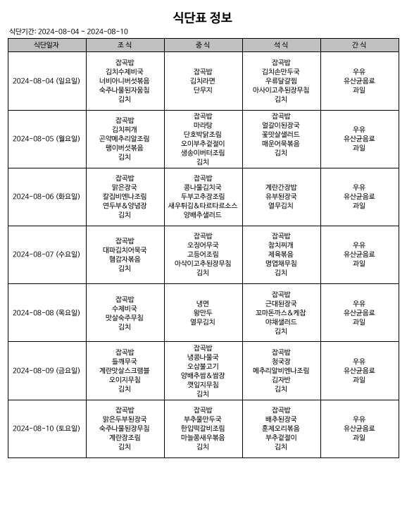8월 1째 주 식단 페이지 정보 작성자 다래동산 댓글 0건 조회 366회 작성일 24-08-04 00:00 본문 8월 1째 주 식단입니다. 식단은 시설 사정에 따라 변동될 수 있습니다. 목록 이전글8월 2째 주 식단 24.08.11 다음글7월 5째 주 식단 24.07.28 댓글목록 댓글목록 등록된 댓글이 없습니다.