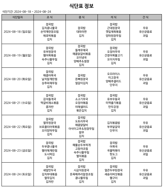 8월 3째 주 식단 페이지 정보 작성자 다래동산 댓글 0건 조회 360회 작성일 24-08-18 00:00 본문 8월 3째 주 식단입니다. 메뉴는 시설 사정에 의해 변경될 수 있습니다. 목록 이전글8월 4째 주 식단 24.08.25 다음글8월 2째 주 식단 24.08.11 댓글목록 댓글목록 등록된 댓글이 없습니다.